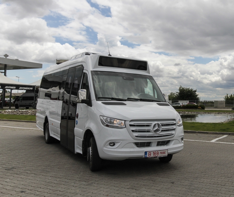 - Configurație: 15 scaune + 12 locuri în picioare + 1 loc persoane cu dizabilități + șofer